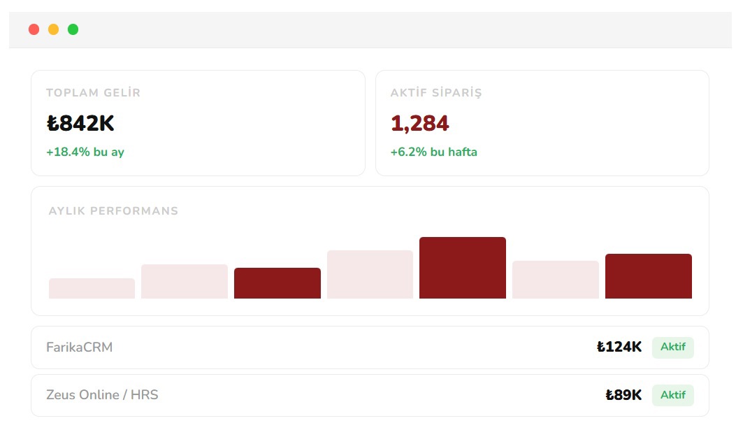 Otelcilikten CRM'e, POS'tan analitiğe — işinizin tam merkezinde çözümler